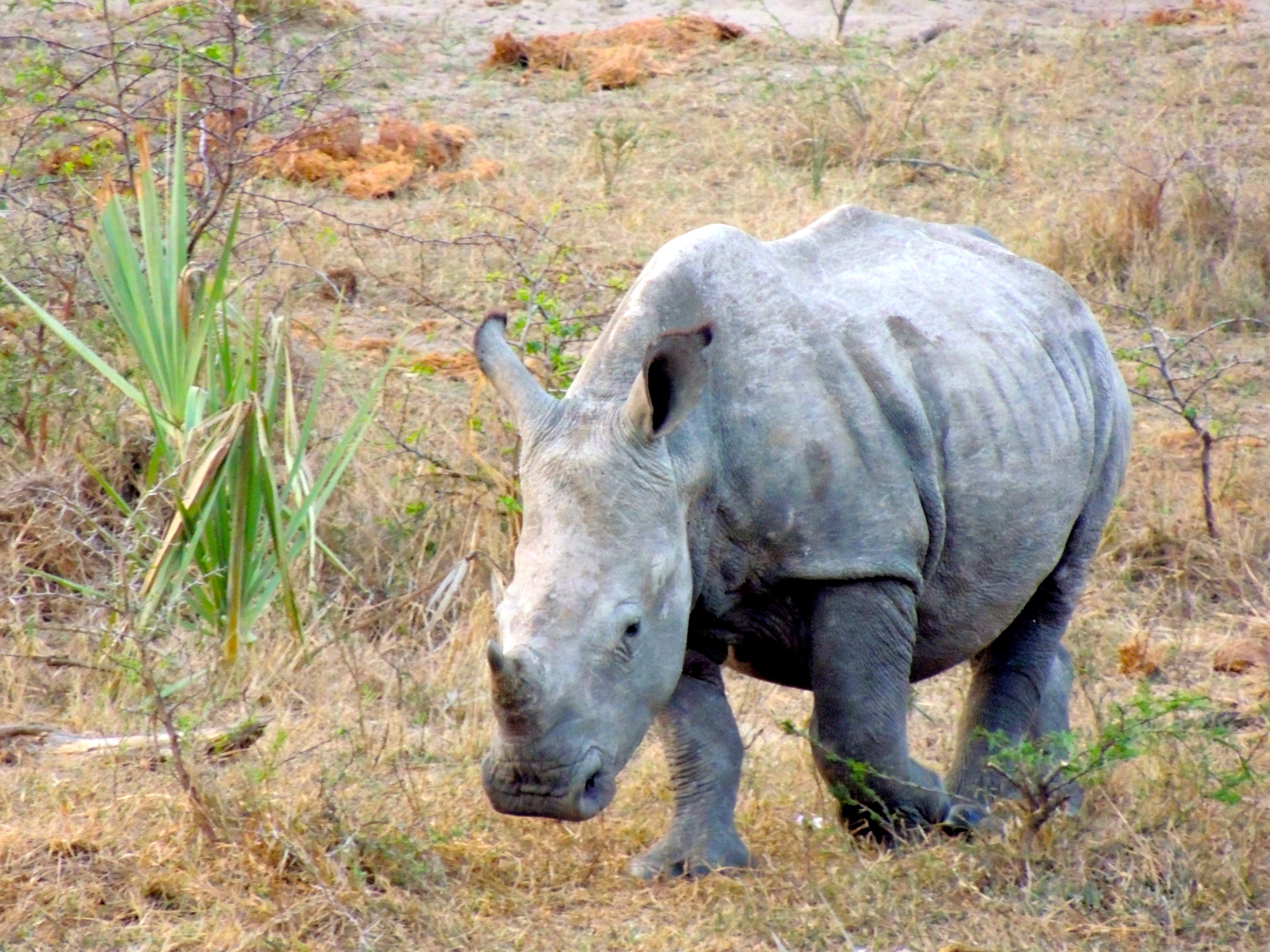 Papa white rhino – you can tell a white and black rhino apart from the shape of their lips; white rhinos have a flat lip, whereas black have a more beaked lip