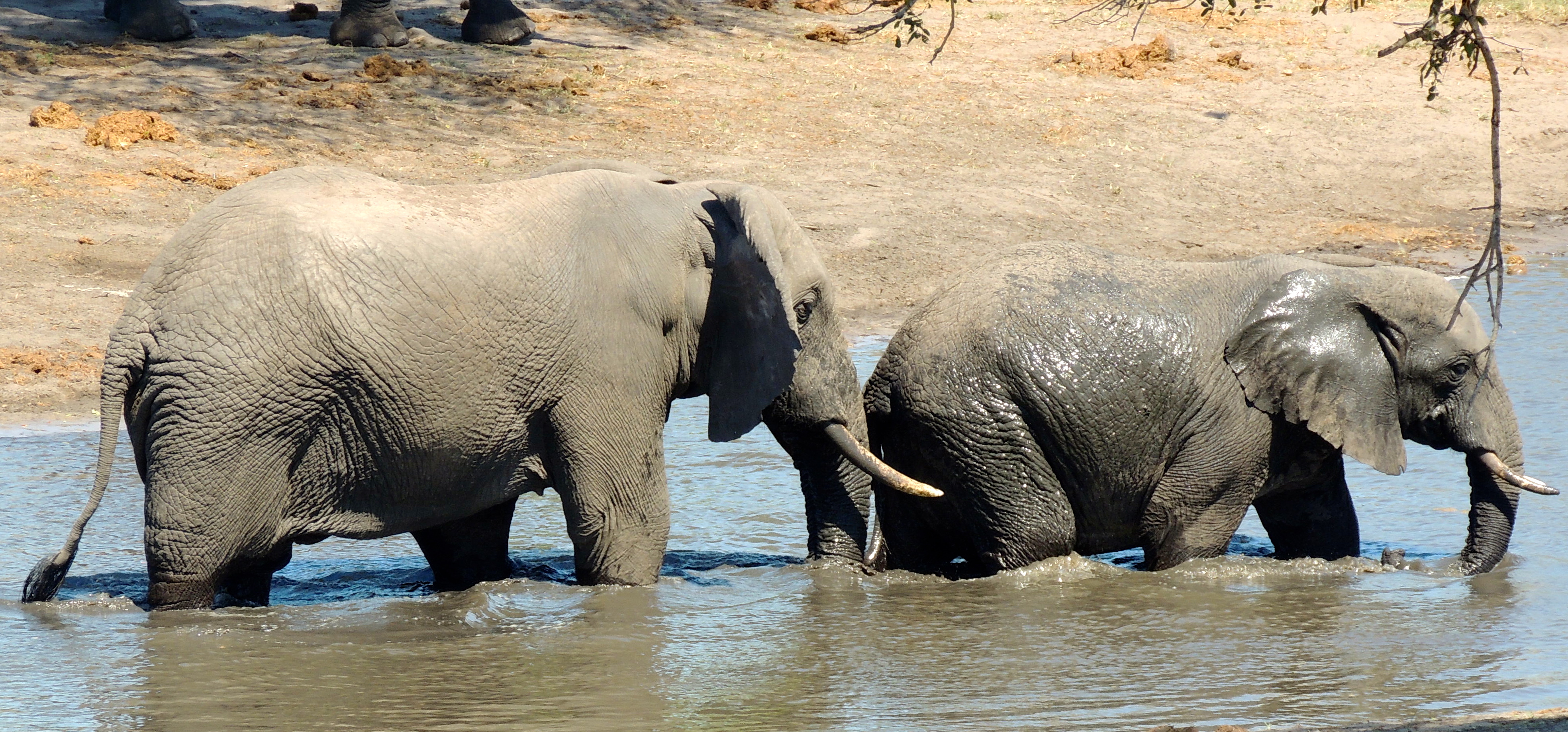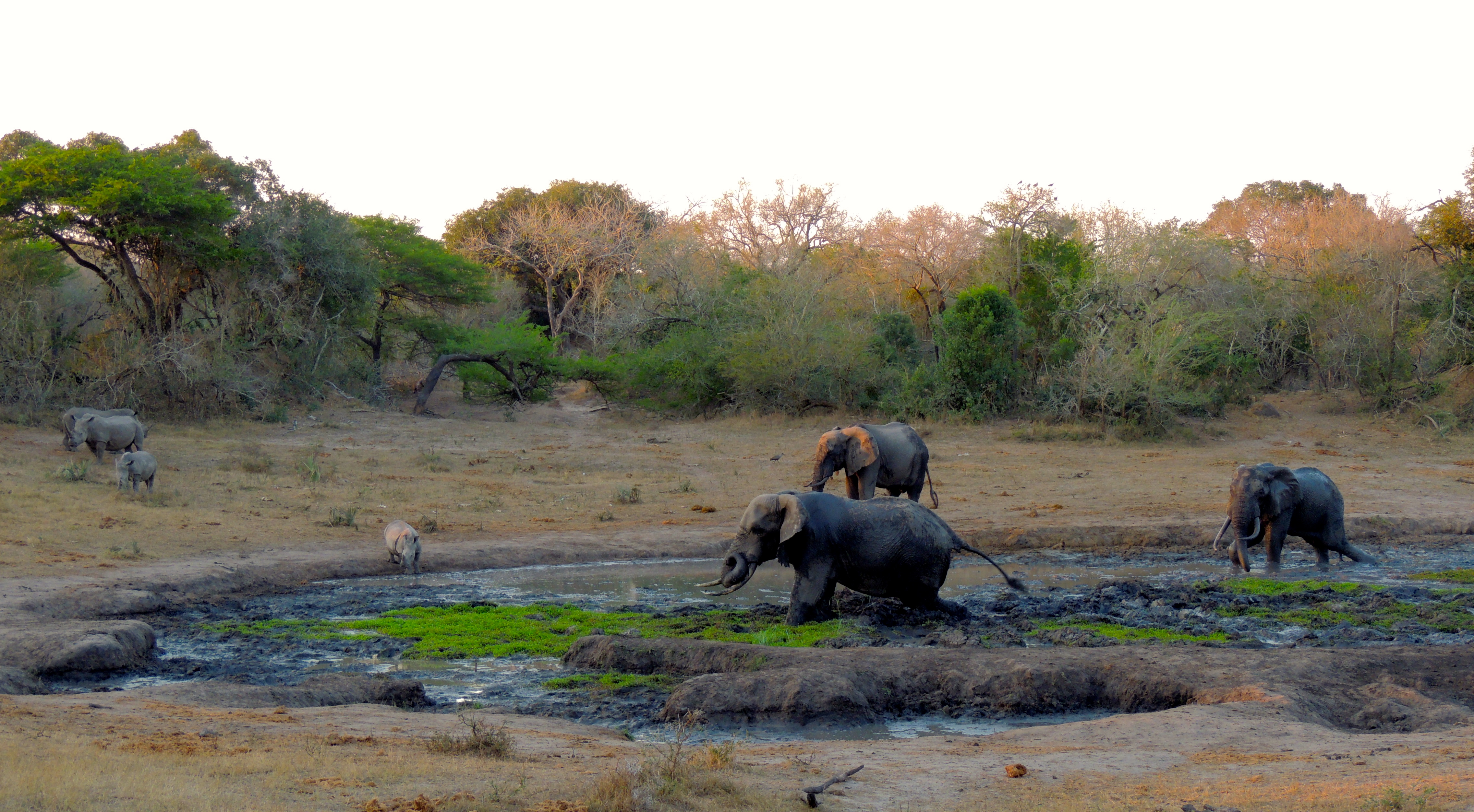 We moved from the blind to head to another watering hole, and watched as three elephants came out from the woods to have a drink and a mud bath.