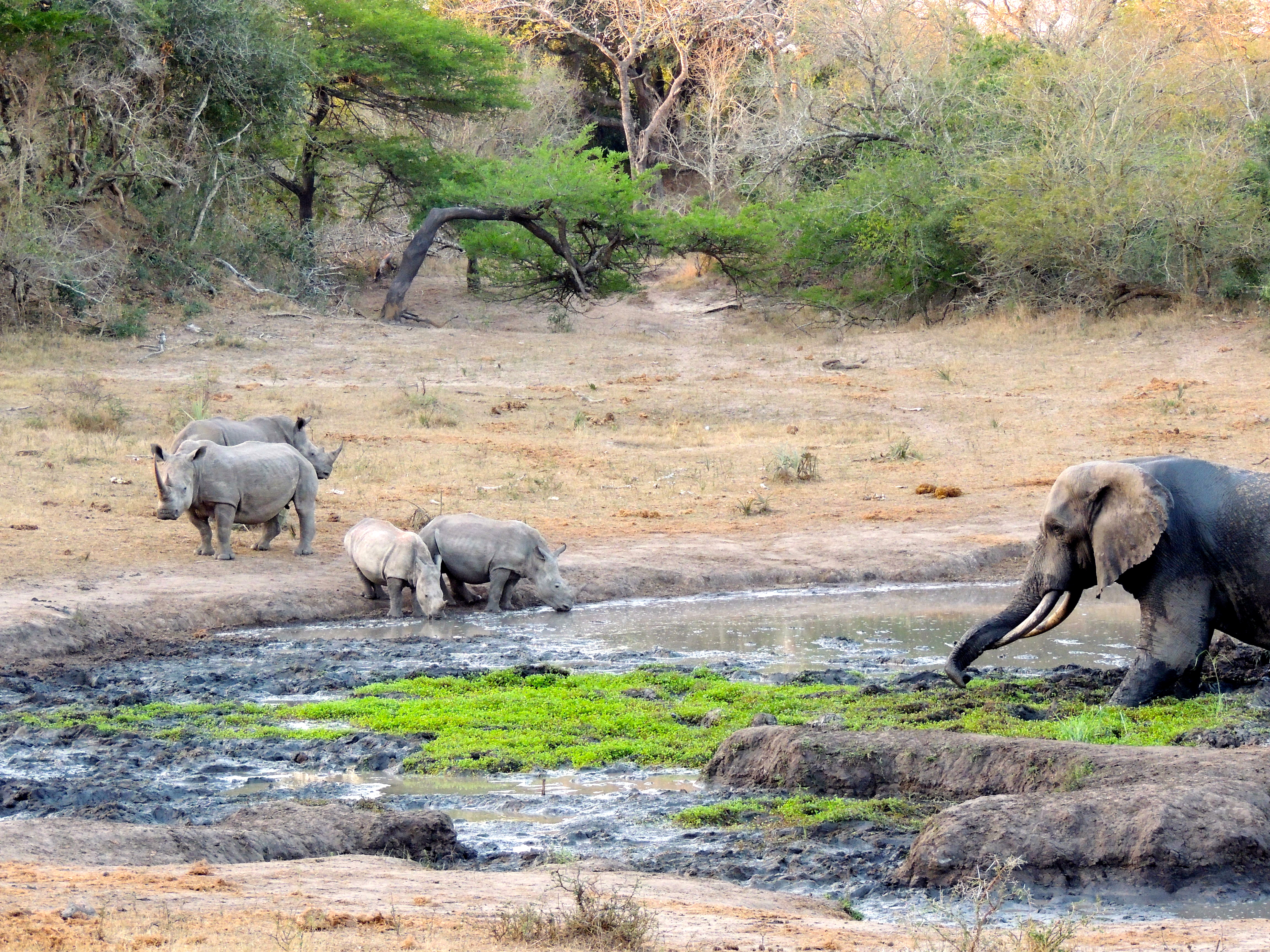 It was amazing to watch these two giant animals just chilling with one another (albeit suspiciously), and you really get an idea of how large African elephants are, considering they make a 2300kg animal look tiny. But it was a great way to knock off two of the big five animals!