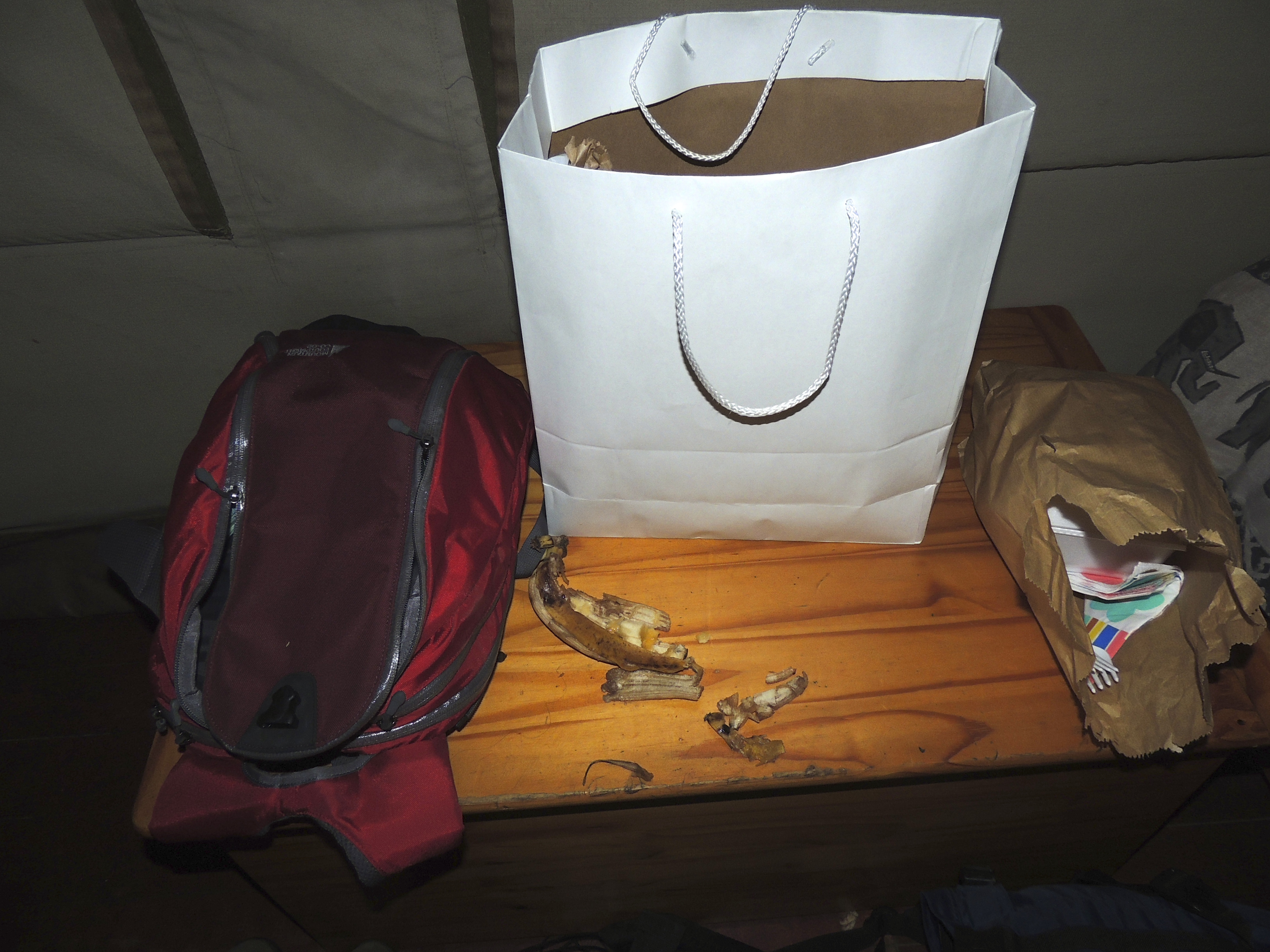 It seems like while we were away, one of Tembe’s monkeys managed to sneak into our tent to help itself to a banana. Luckily, it left our wine and cake alone (our two main food groups for the break), and darted out as soon as we got back!