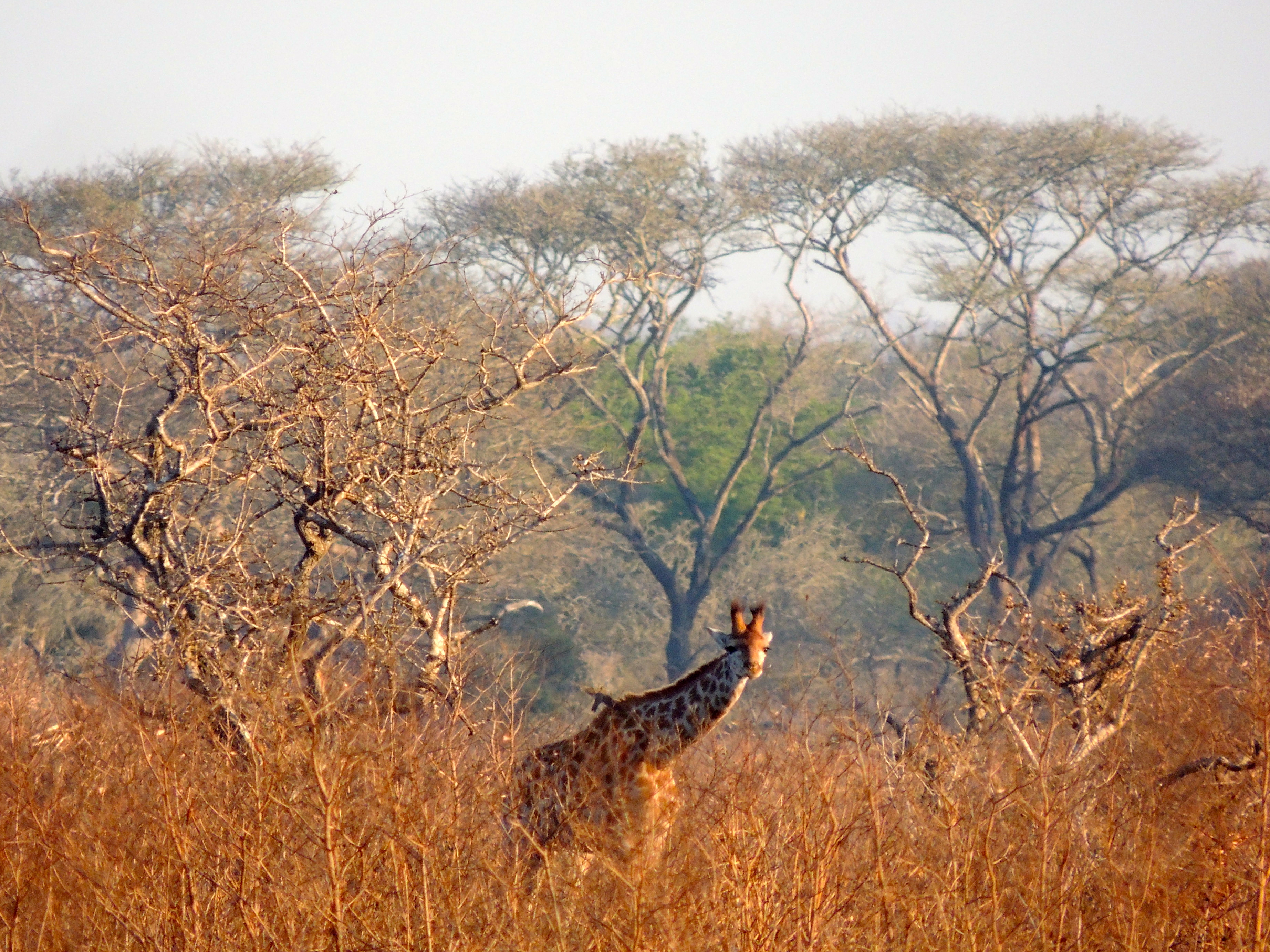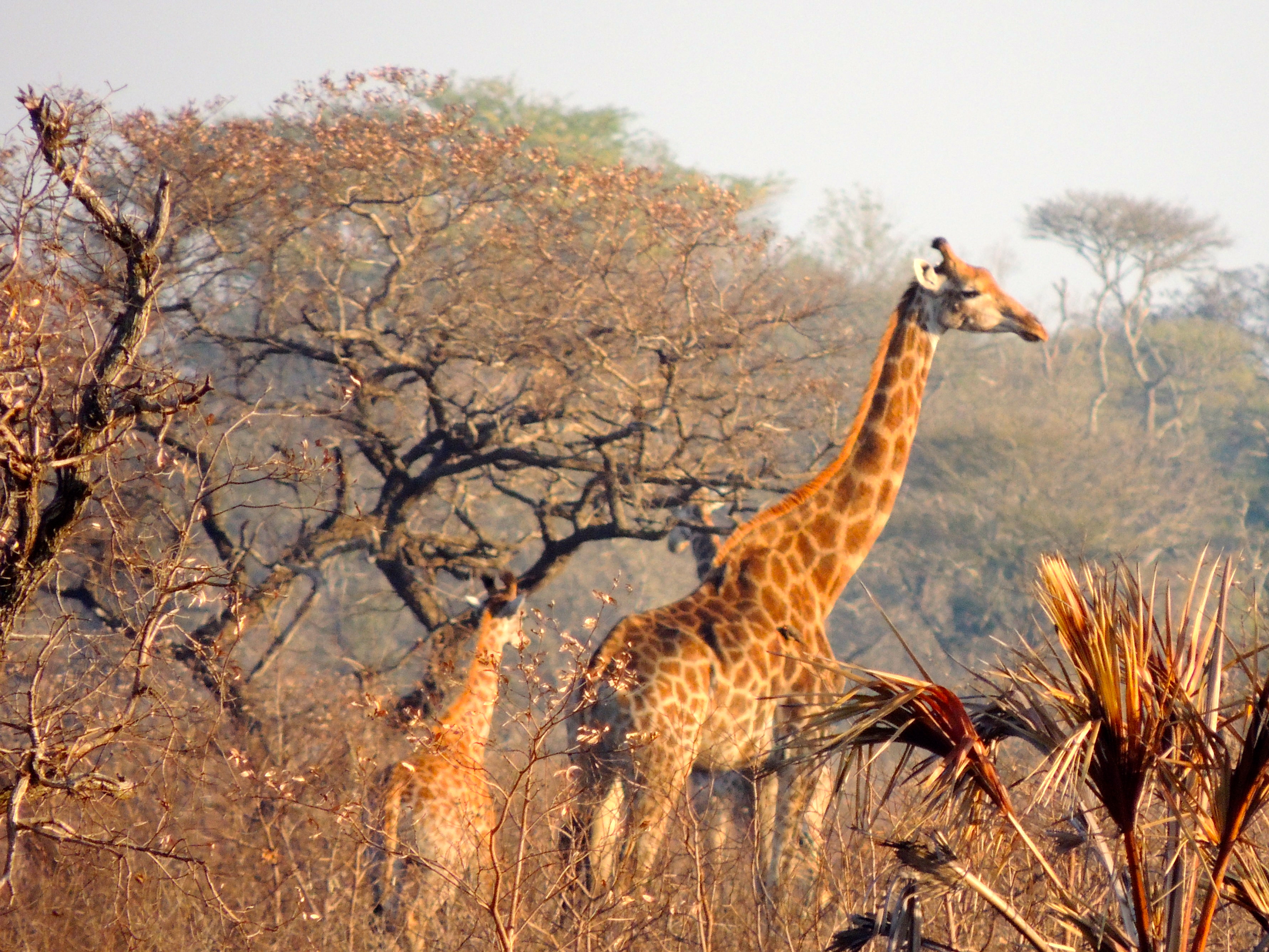 The first animal we saw (aside from the nyalas of course) was a giraffe! It was actually like the opening scene of The Lion King – the sun rose, the giraffes and their babies came out (seriously, go watch The Circle of Life, THAT IS EXACTLY HOW IT HAPPENS). We had seen one driving home last night, but it was too dark to get any decent photos. Luckily, the giraffes this morning were in a better mood for posing, and happened to have a baby!