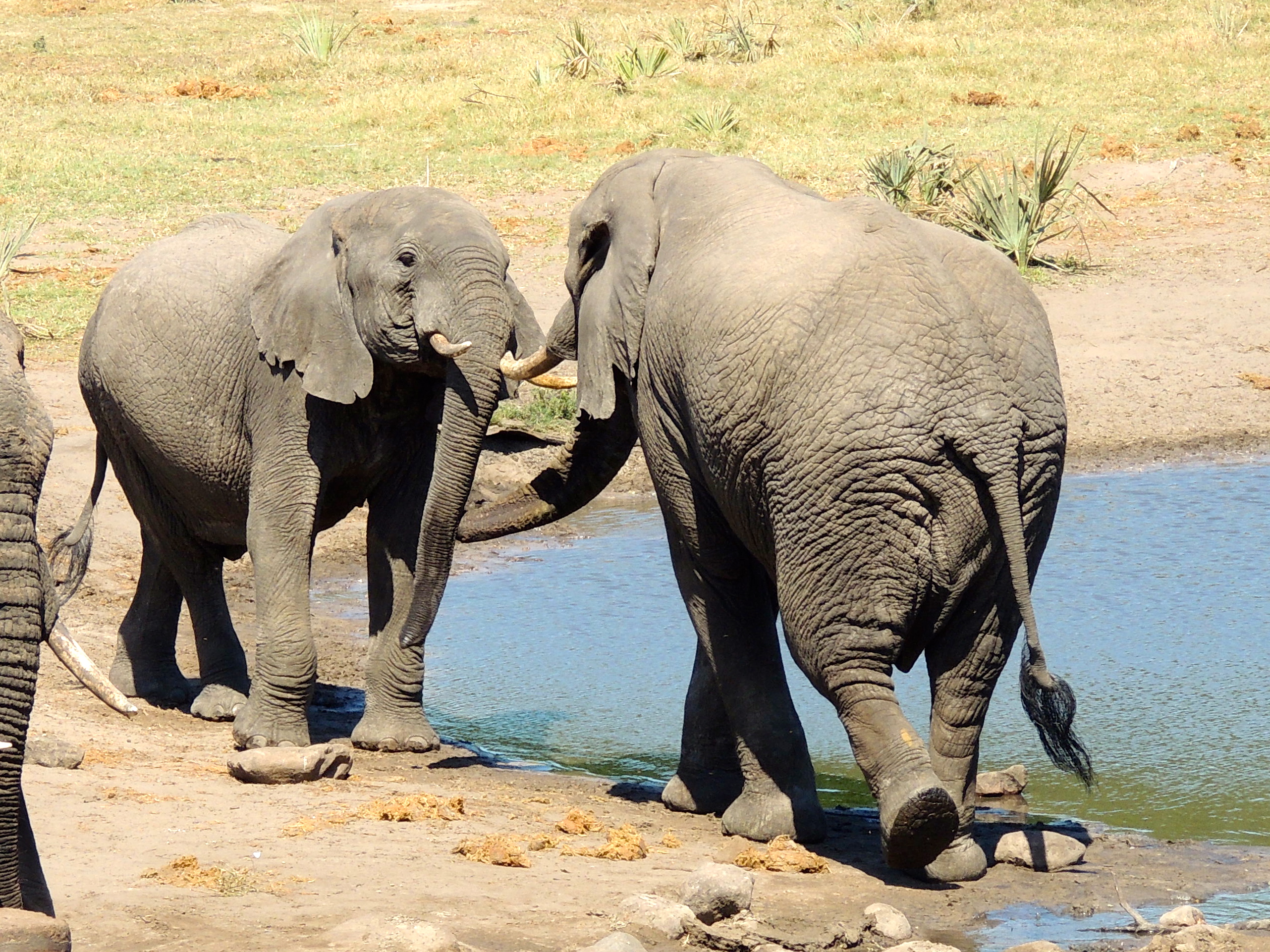 That afternoon, Ali and I went to a hide, which is the same thing as a blind. The hide overlooks a watering hole. Bob and Darcy had been there for the past two days and had seen around 25 elephants at the same time. We didn’t get as lucky as they did, but there was a group of bulls, including a couple younger ones (~25 years old) being taught how to act by the older bulls.