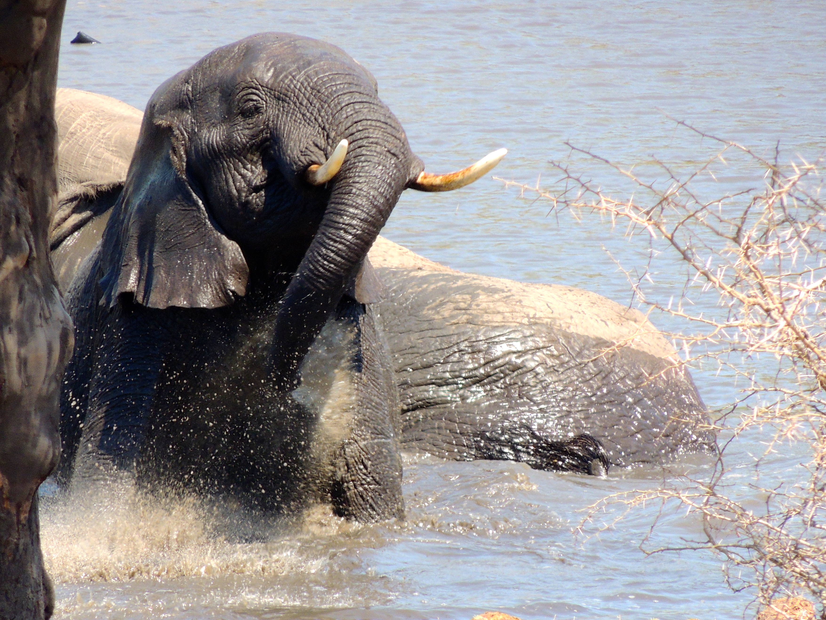 The elephants were also making use of the water hole to splash around and take a bath. They are so cute when they play in water – they actually remind me of dogs a little bit (especially my Varta) because of the way they roll around in the water and mud.